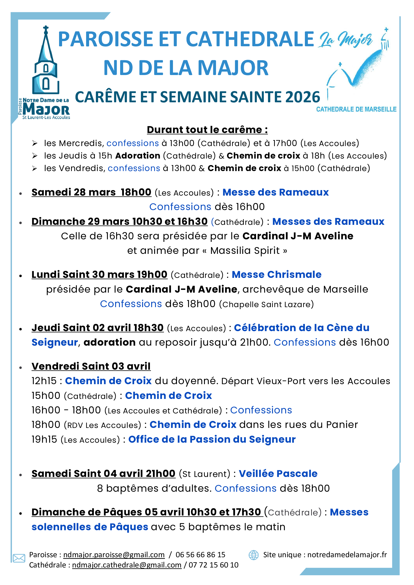 Les groupes qui souhaitent célébrer une messe dans la cathédrale doivent faire la demande à l’adresse mail : ndmajor.cathedrale@gmail.com